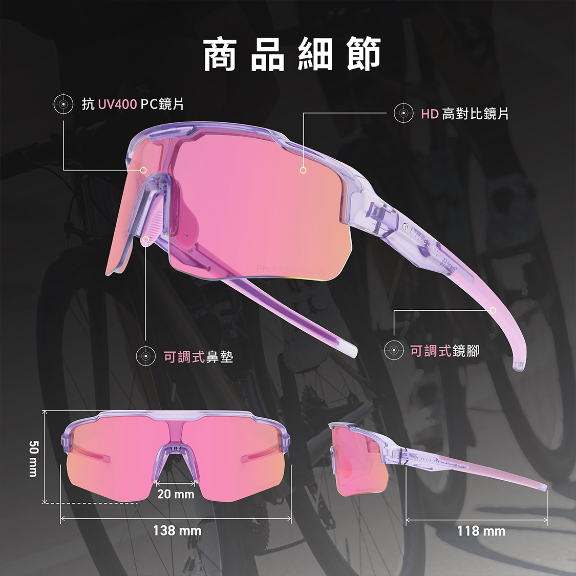 從柔和紫粉到深邃紫灰,隨環境自然轉換搭配上電鍍紫金色不只是吸睛,更兼具實用遮光機能
